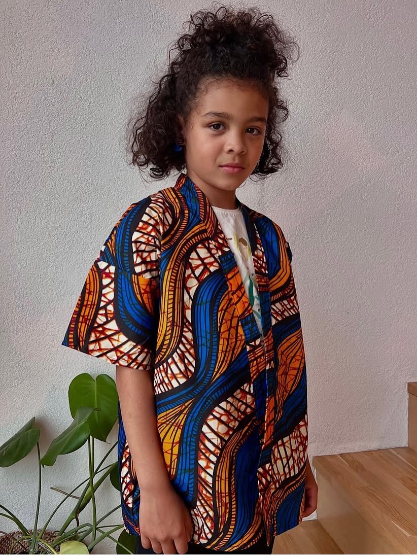 kimono enfant fait main, avec un tissu wax Ankara